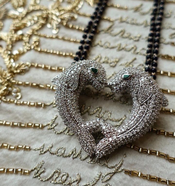 Each kali had intricate frames, in which I showcased all the important moments of our life – our dating milestones, the proposal and every detail of our love story. The bottoms of my lehenga and dupatta were finished with a hem of jumping dolphins, which was how our story began. I completed my look with some beautiful jadau jewelry that Vanraj designed for me, and it felt so perfect to be wearing both of our designs on our special day. Wearing my Krésha Bajaj lehenga was the most exhilarating feeling. It looked beautiful, elegant and traditional. With that cherished memory, I started my journey with my husband and also understood what I wanted to do with my brand – share the same joy I felt with beautiful brides all over the world.”
